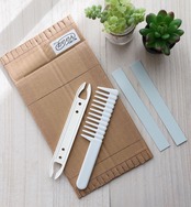 ■キット内容:おりりん1台、麻ひも20m、デニムテープ2m、横板、シャトル、クシ、解説書
